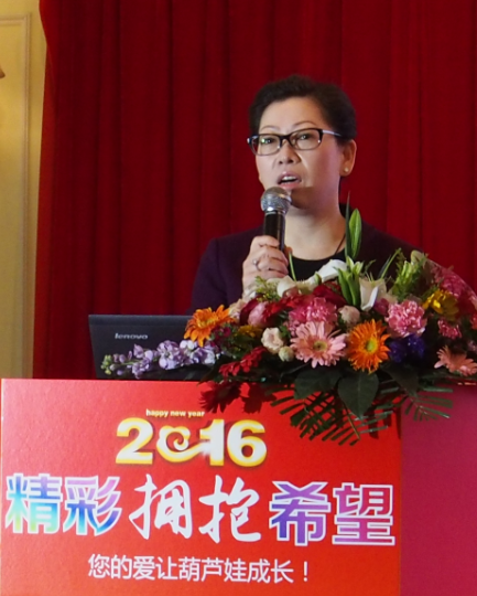 今年公司营销中心将2015年的重点工作与2016年的规划展望凝聚成17个关键词,通过视频向与会人员进行了展示,有新意有亮点,引起了大家的强烈共鸣。利博药业集团今年已经满7周岁了,7年来公司产销量以年均30%的速度高速增长。集团能取得今天的成绩,离不开全体利博人的努力与付出。利博药业集团董事长刘景萍博士在总结表彰会上向利博的全体营销将士们表示感谢!字里行间的关爱让每个利博人都真切感受到了大家庭的温暖。董事长刘景萍博士致辞