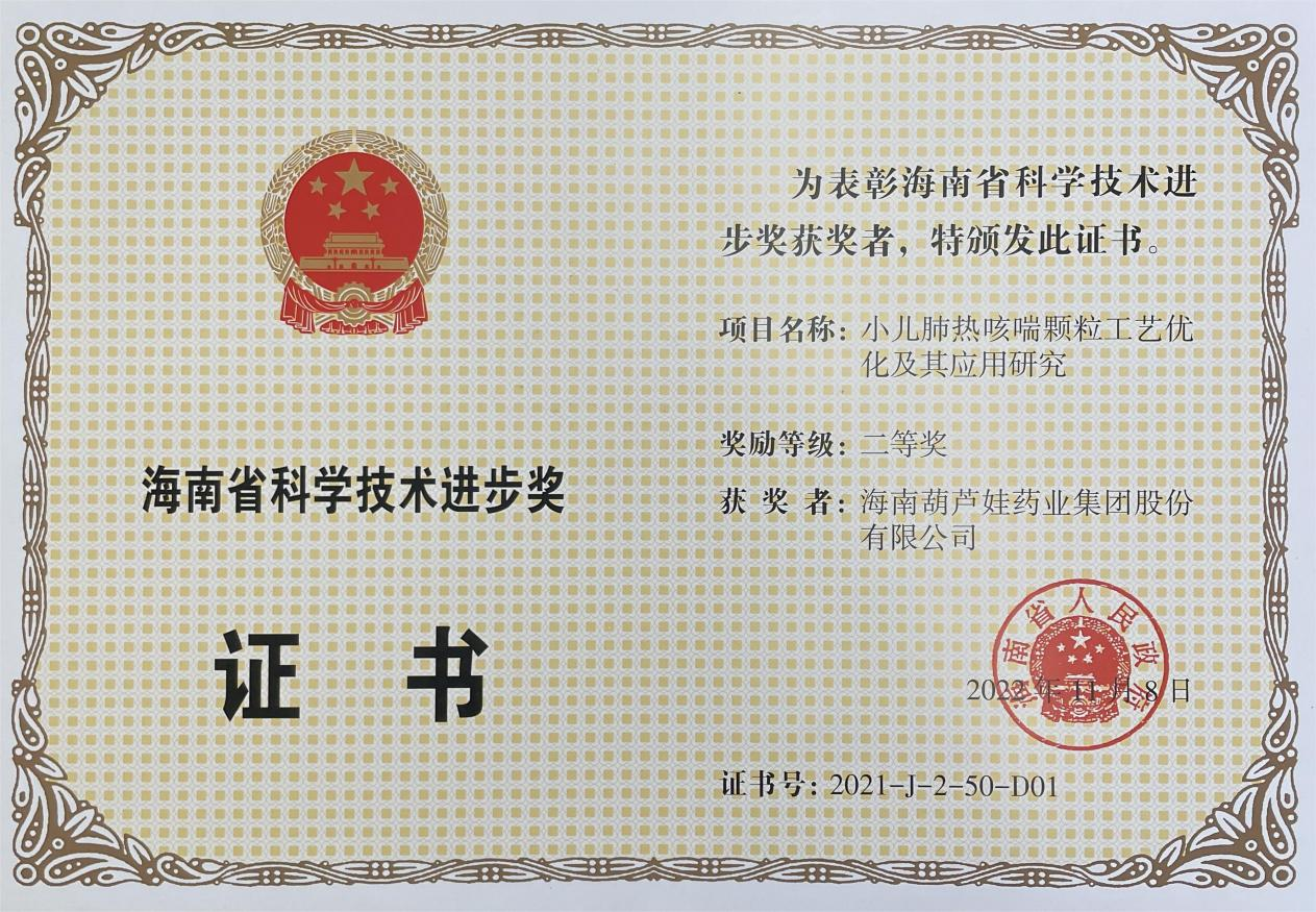 为此,小儿肺热咳喘颗粒的制备方法获得了第二十一届中国专利优秀奖(2019年),专利申请号:ZL201010134951,此次作为专利技术的应用,获得了2021年度海南省科学技术进步奖二等奖。在此之前,利博牌小儿肺热咳喘颗粒还多次被授予“临床价值中成药品牌”、“中国连锁药店最具合作价值单品”,荣登“中国医药品牌榜”。