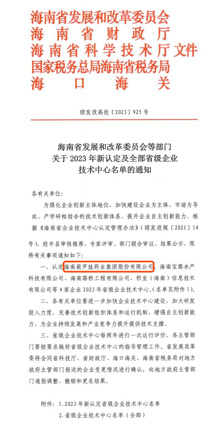近日,海南省发改委等多部门联合公布了《关于2023年新认定及全部省级企业技术中心名单的通知》,其中,海南利博药业集团股份有限公司成功通过评审,被认定为省级企业技术中心,是本次获批的4家企业之一。